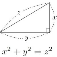 今日は、少し難しいお話をします。 中学校3年生で「三平方の定理」を習います。直三角形の「短い辺の長さ」をそれぞれ2乗してたすと、「斜辺の長さ」の2乗になる。という定理です。例えば、右の図で、「x=3㎝、y=4㎝、z=5㎝ …