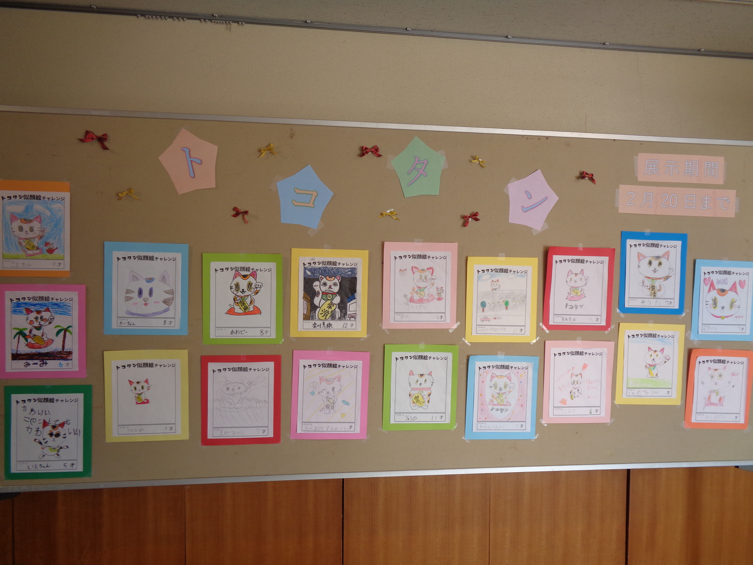 今日からトコタンの似顔絵チャレンジの展示が始まりました。 前回はしろたろうの似顔絵を募集していたのですが、今回常滑の公式キャラクター「トコタン」を書くことを課題にさせていただきました。