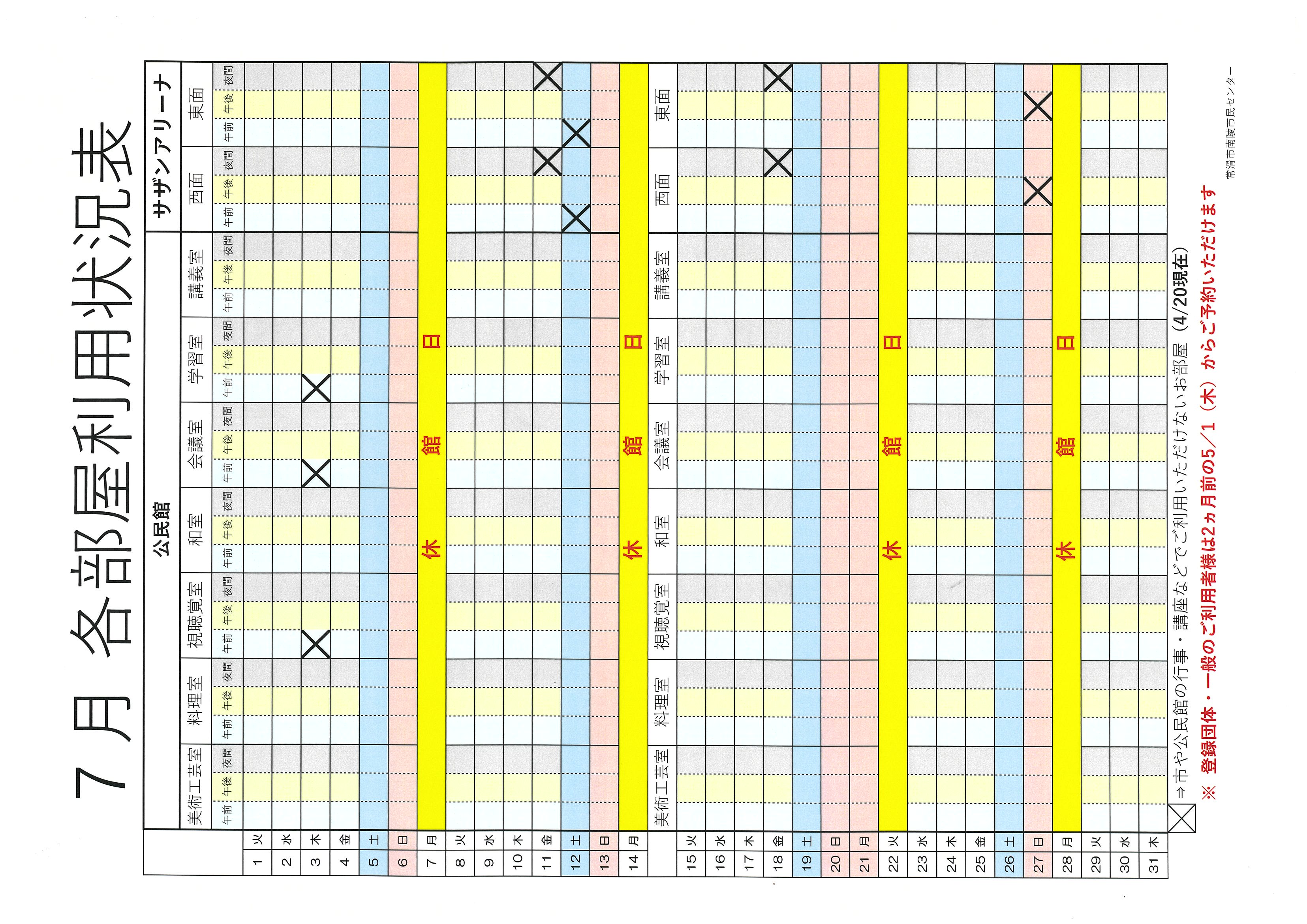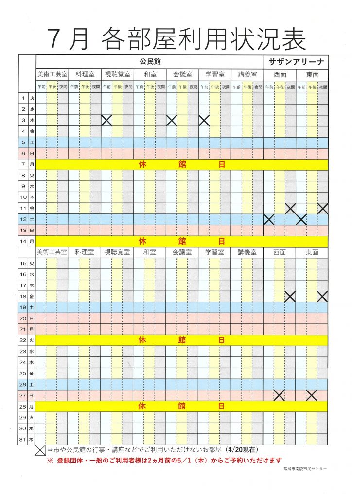 7月の予約は5月1日(木)よりご予約いただけます。 [南陵公民館]