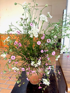 お花の名前を調べてみたところ白いお花がホワイトレース、ピンクのお花がサポナリア・バッカリアというみたいです🌼