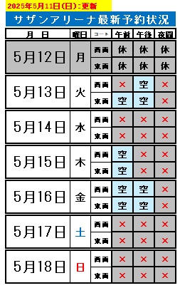 ご参考までに、今週もサザンアリーナの予約状況を掲載します。
