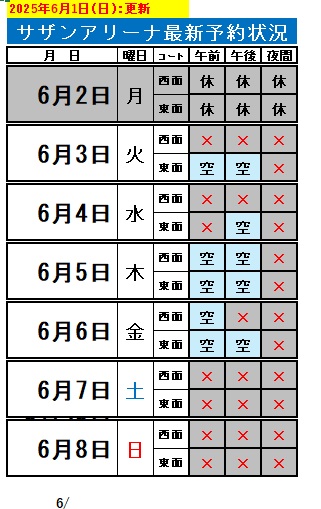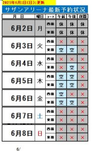 ご参考までに 今週のサザンアリーナの予約状況表を掲載しました。