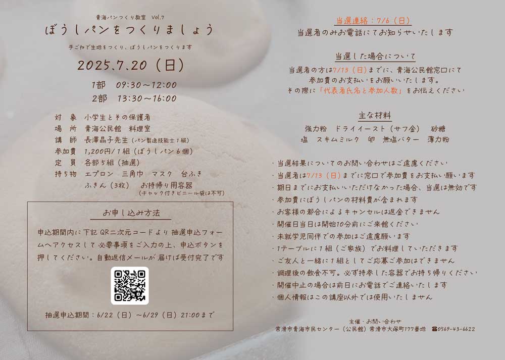 ☆当選者は7月13日(日)までに青海公民館窓口にて参加費をお支払い願います。