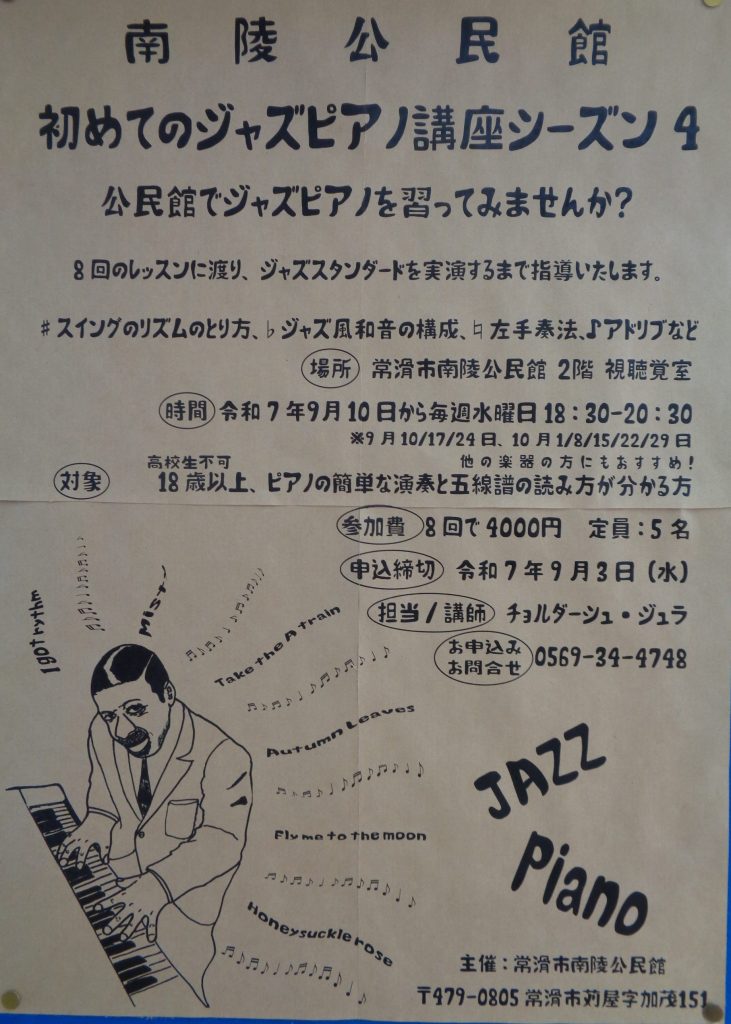 今回ので4回目の開催となる南陵公民館主催の「初めてのジャズピアノ講座」ですが、お申込み開始させていただきました。