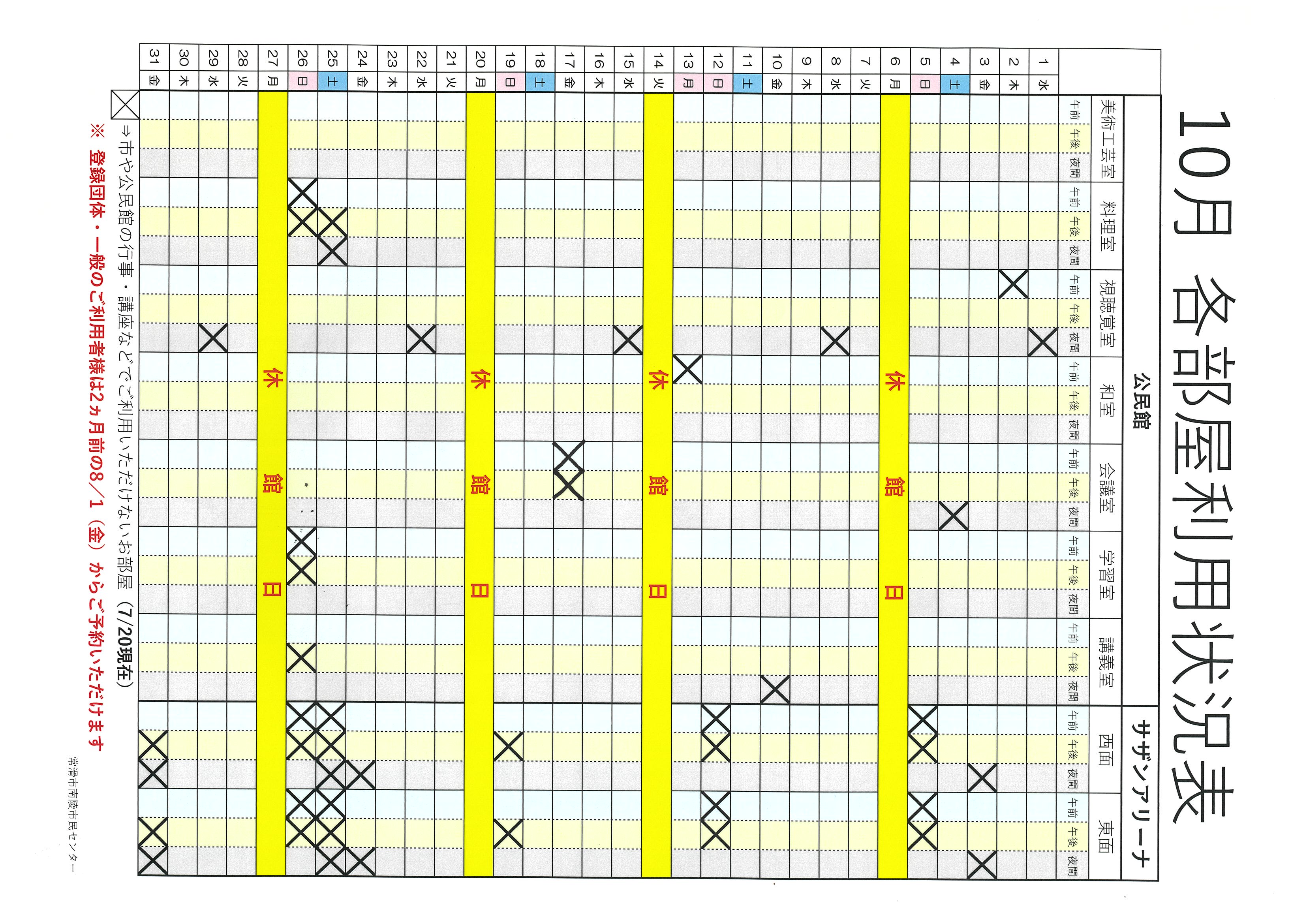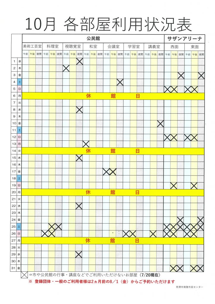 利用できない日にちを事前に把握いただき、仮予約の際に役立てていただければ幸いです。