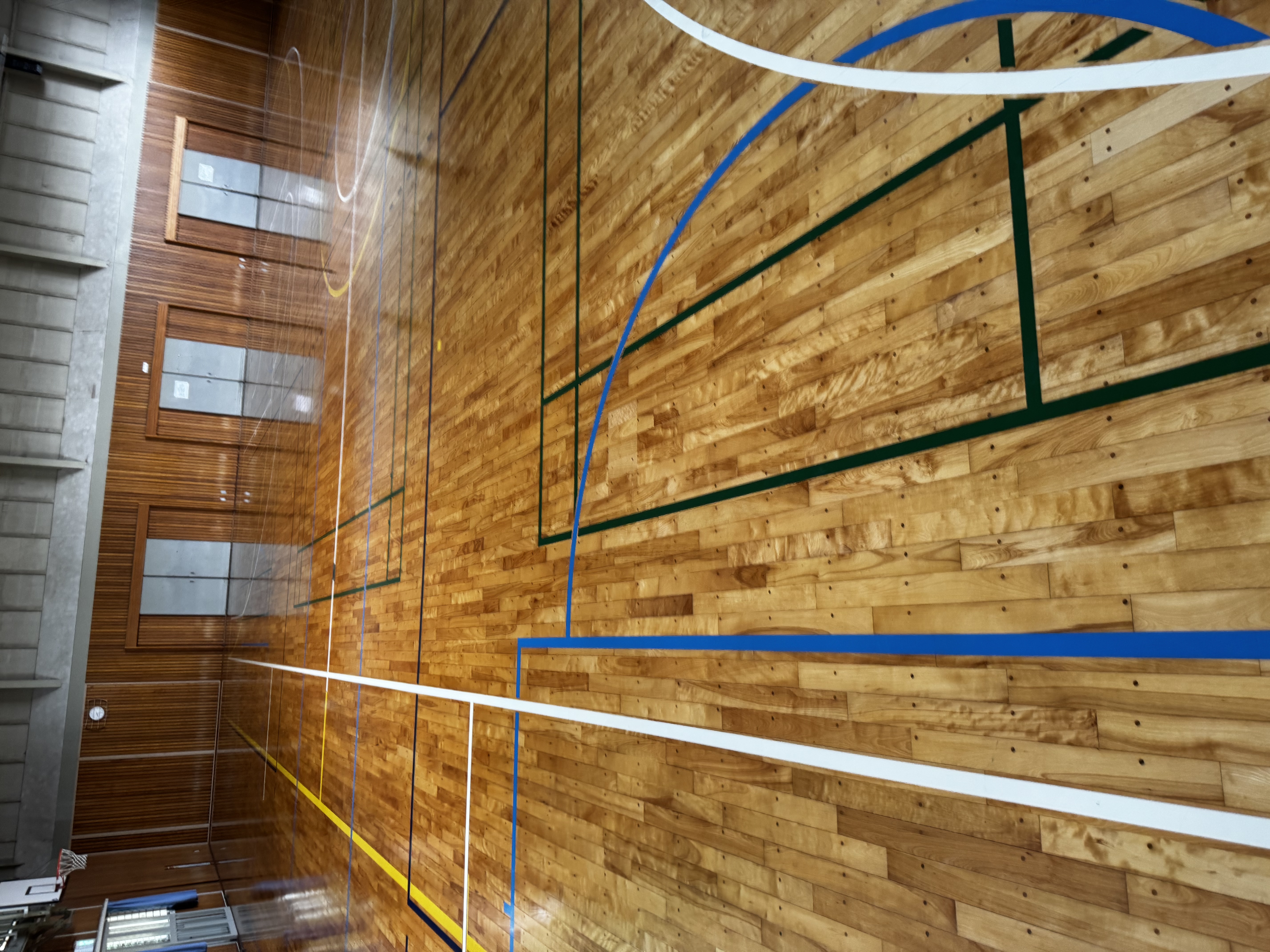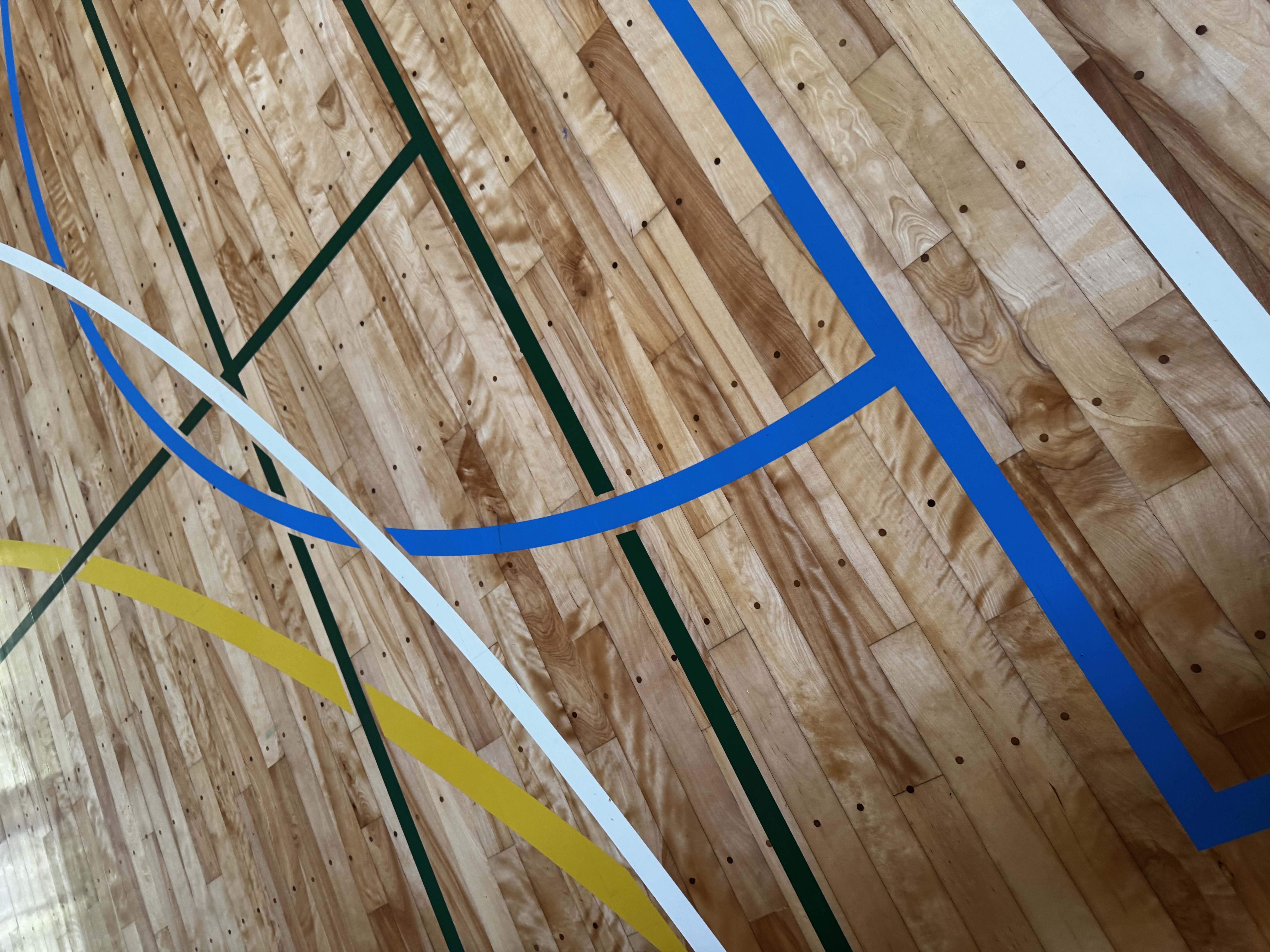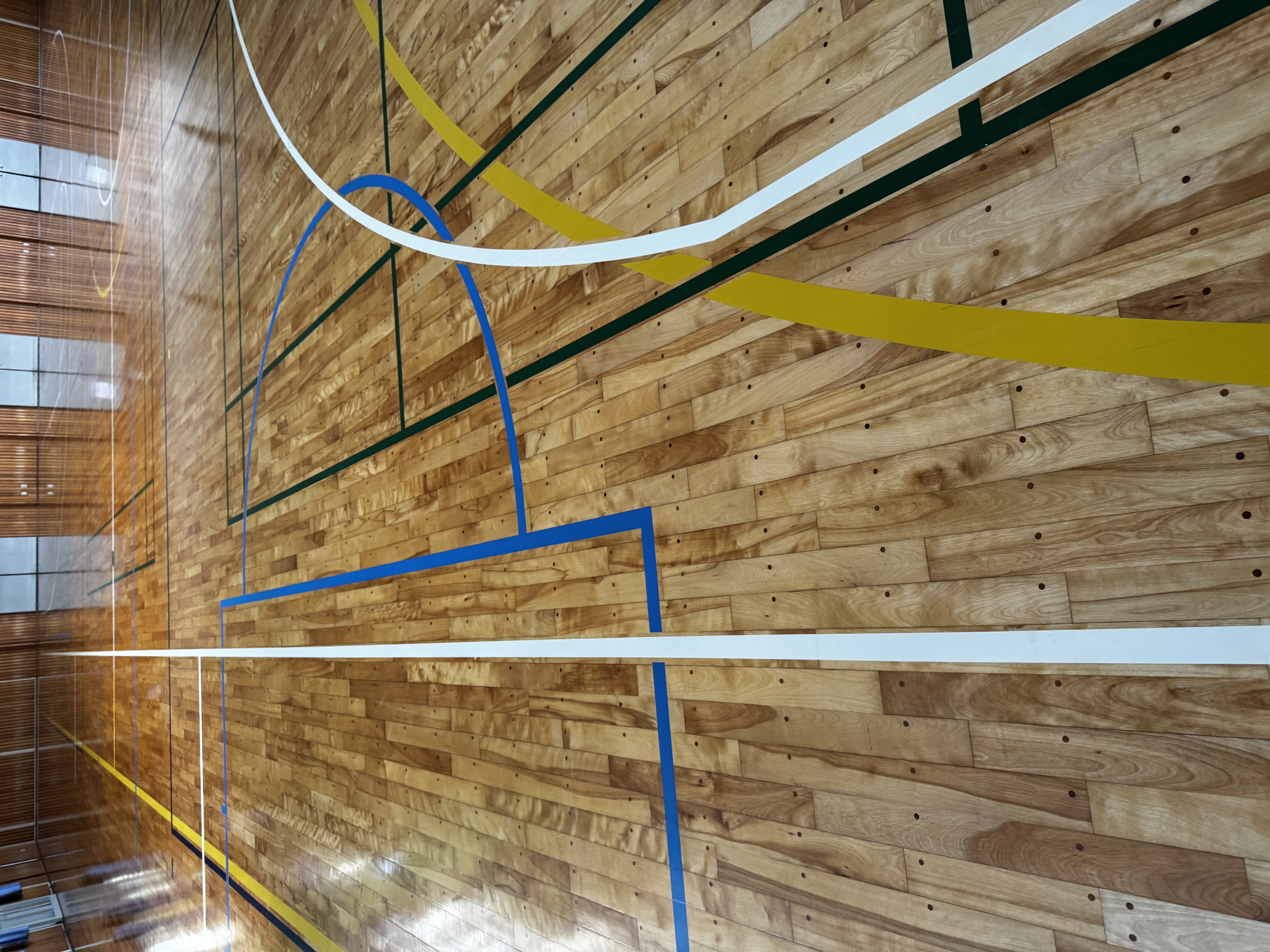白→バスケットボール 青→ミニバスケットボール 紺→バレーボール 緑→バドミントン・ソフトバレーボール 黄色→フットサル