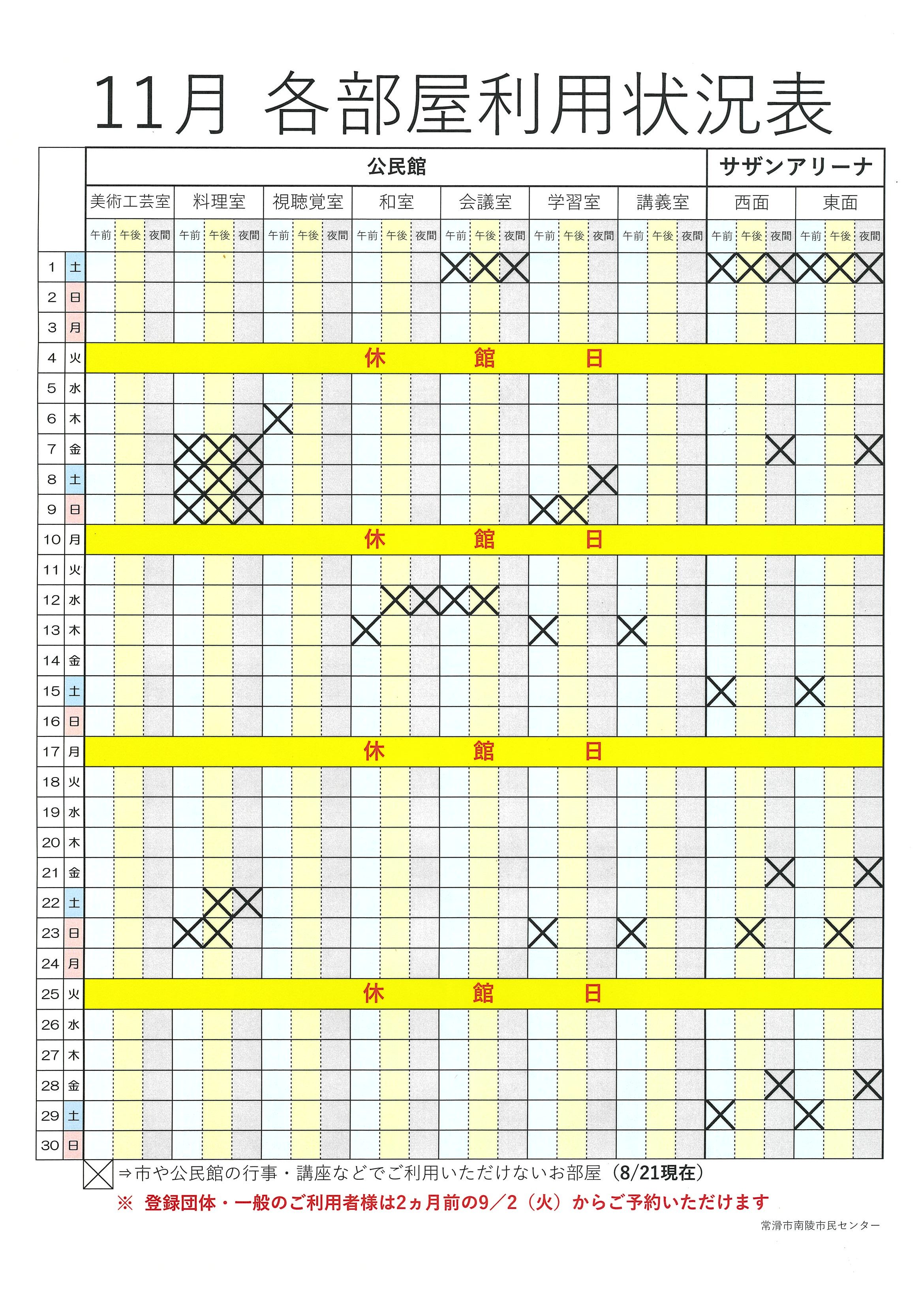 11月の施設利用状況表を公民館掲示板で確認して頂けます。