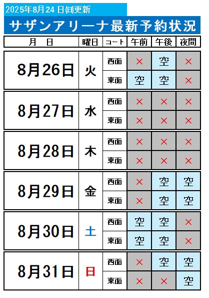 ◎本日より5日先までは、ネットで空き状況をご覧いただけませんのでご注意ください。 尚、キャンセルまたは前日に予約利用のお支払い等で、変更になる場合がございます。 当日利用をご希望の方は、当日にお問い合わせください。 (当日利用は、原則、皆さんでシェアするので、占有はできません)