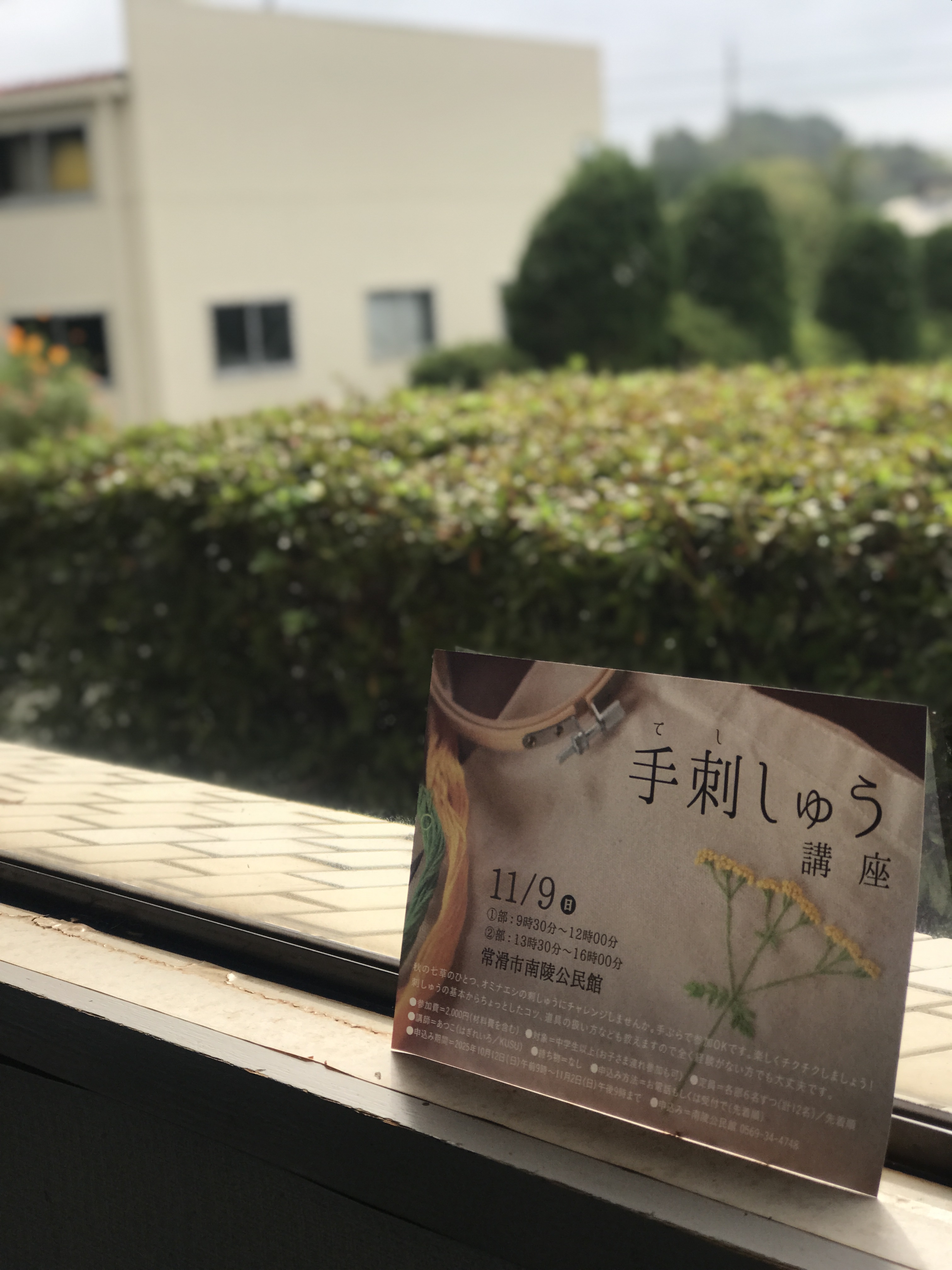 本日朝9時より申し込み開始となりました「手刺しゅう講座」ですが、 おかげさまで午前・午後の部共に定員いっぱいとなりました。 たくさんのお申し込みありがとうございました。