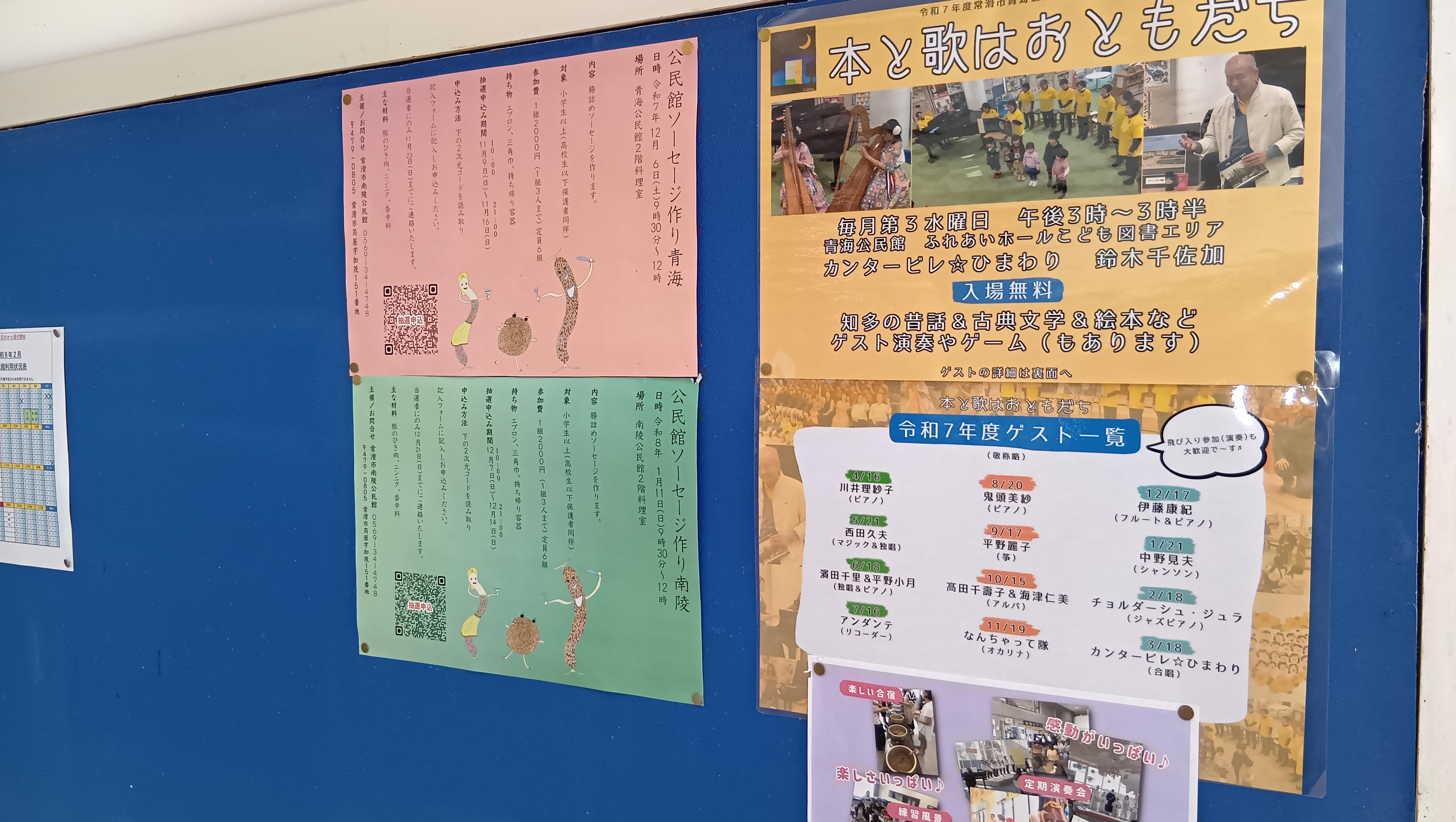 南陵公民館サザンアリーナは、夜間の半面(西面)以外は予約が入っていないので、「当日利用」(シェアでのご利用 ※独占はできません。)で軽く運動して汗を流すことも可能です。その他、会館には、何団体かのイベントポスター,チラシ等の掲示もしてあります。お散歩がてら会館に足を運んでみてはどうでしょうか。