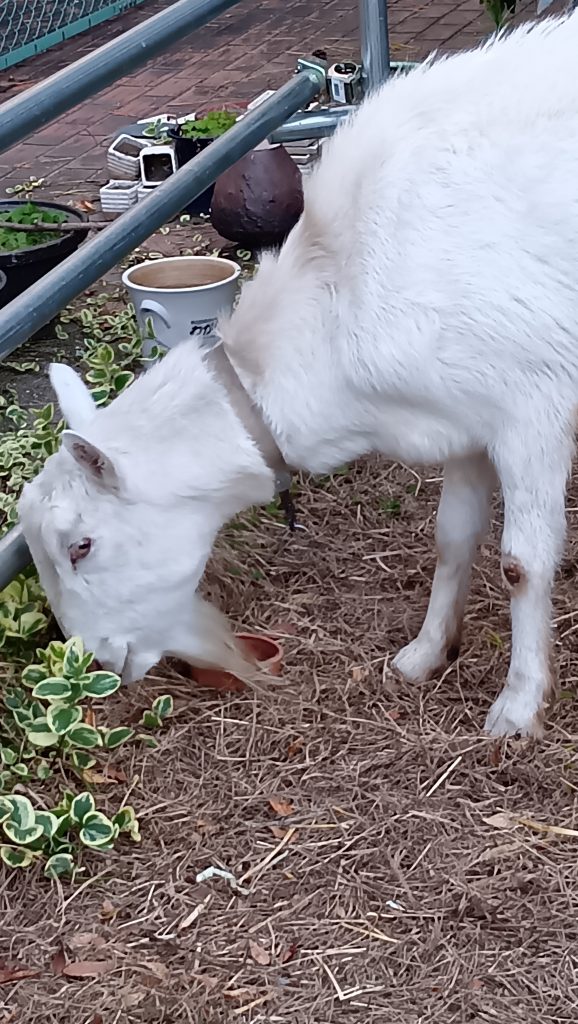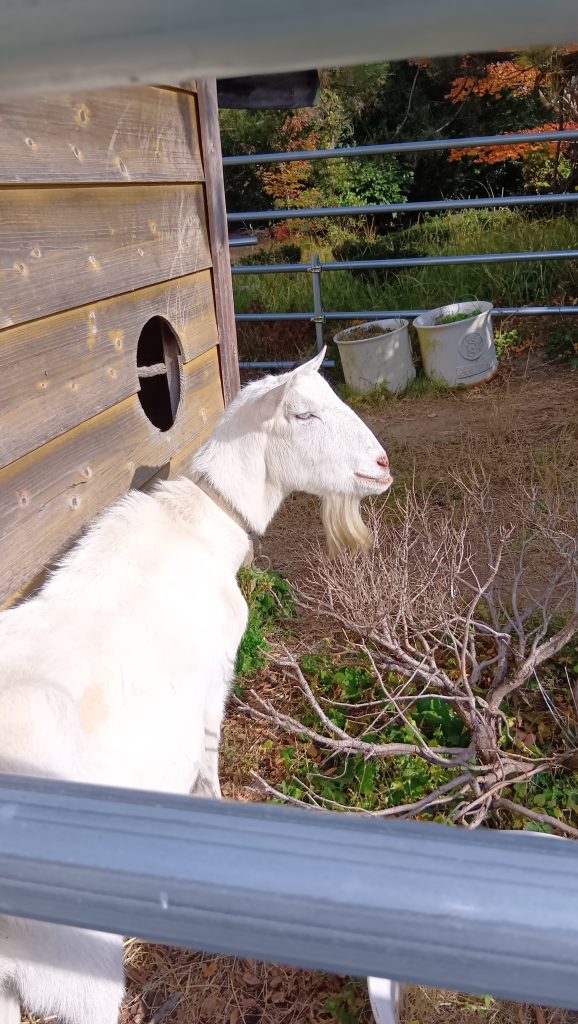 いつもと変りなくです。小屋の外で平然と草を探して食べていました。寒くないのか?全身毛でおおわれているので人間ほど寒くないのかも。うらやまし~。