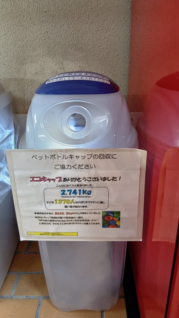 ペットボトルのキャップはプラスチック容器包装に入れるとリサイクル品、「エコキャップ運動」に入れるとワクチンにかわります。二刀流の資源なんですね。