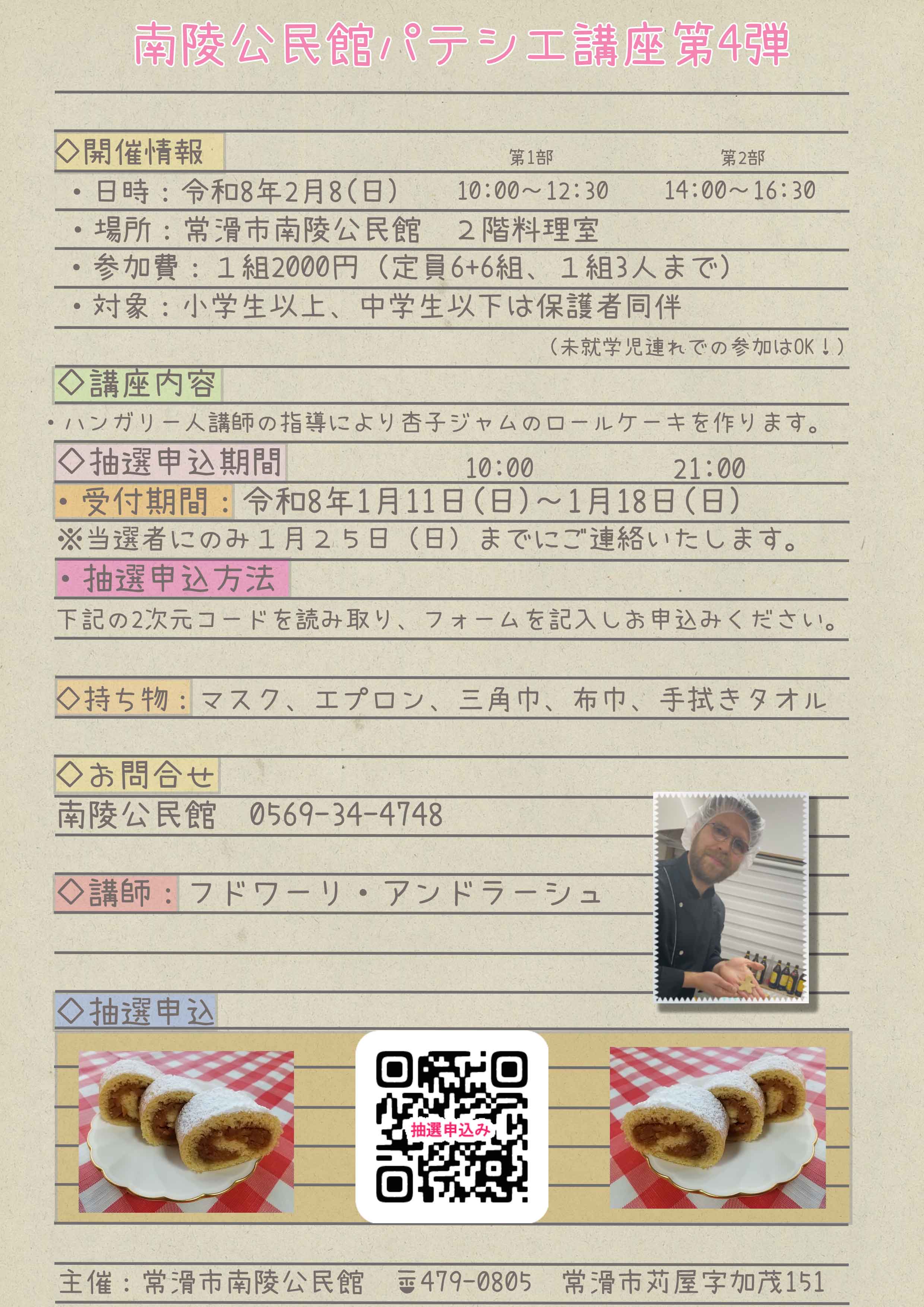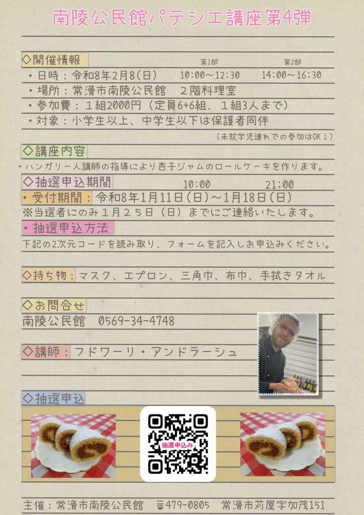 今日の10:00から(まもなく)、パテシエ講座第4弾の抽選の受付を開始いたします。