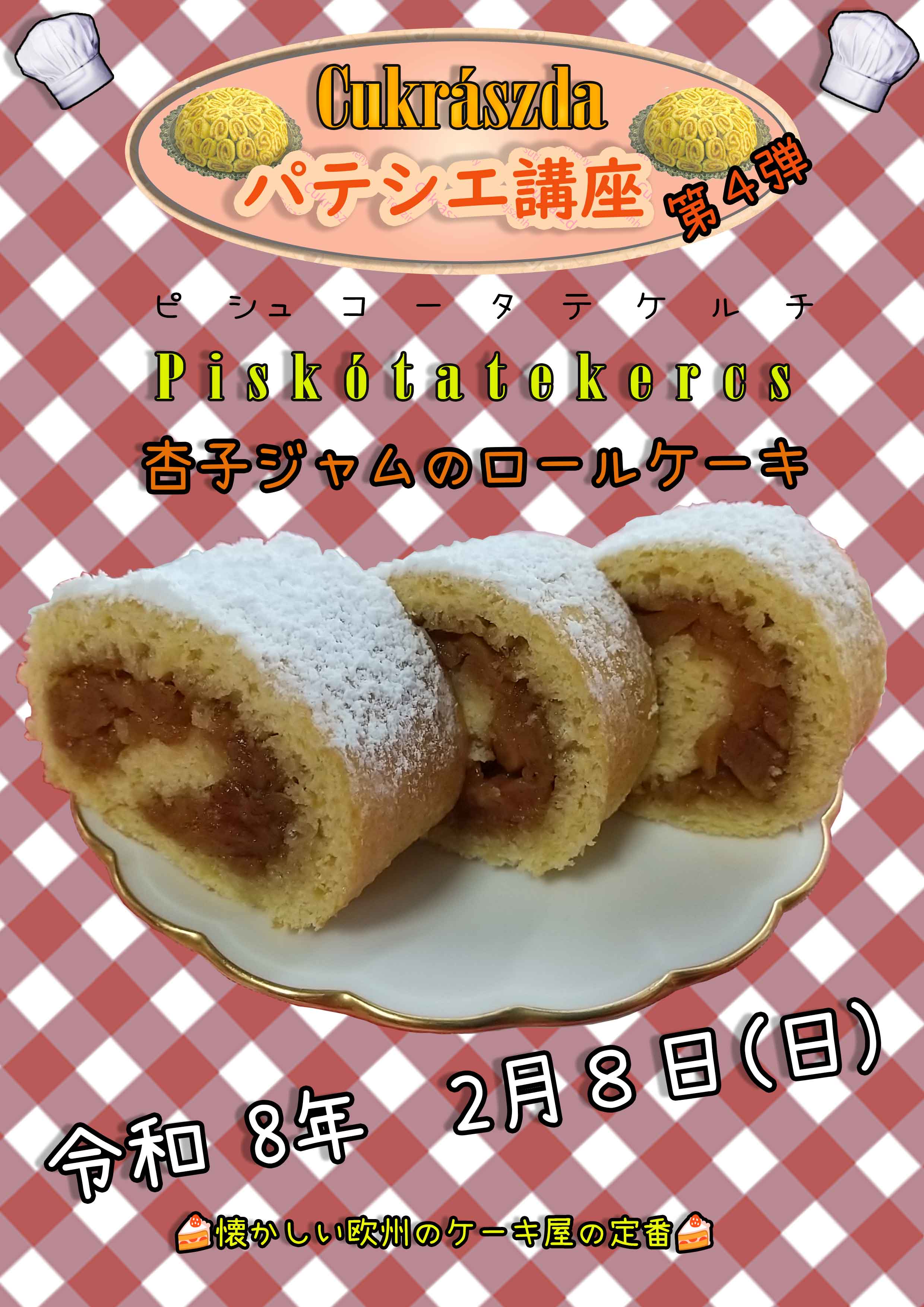 今回は古き良きケーキ屋の定番、杏子ジャムのロールケーキを作ります。
