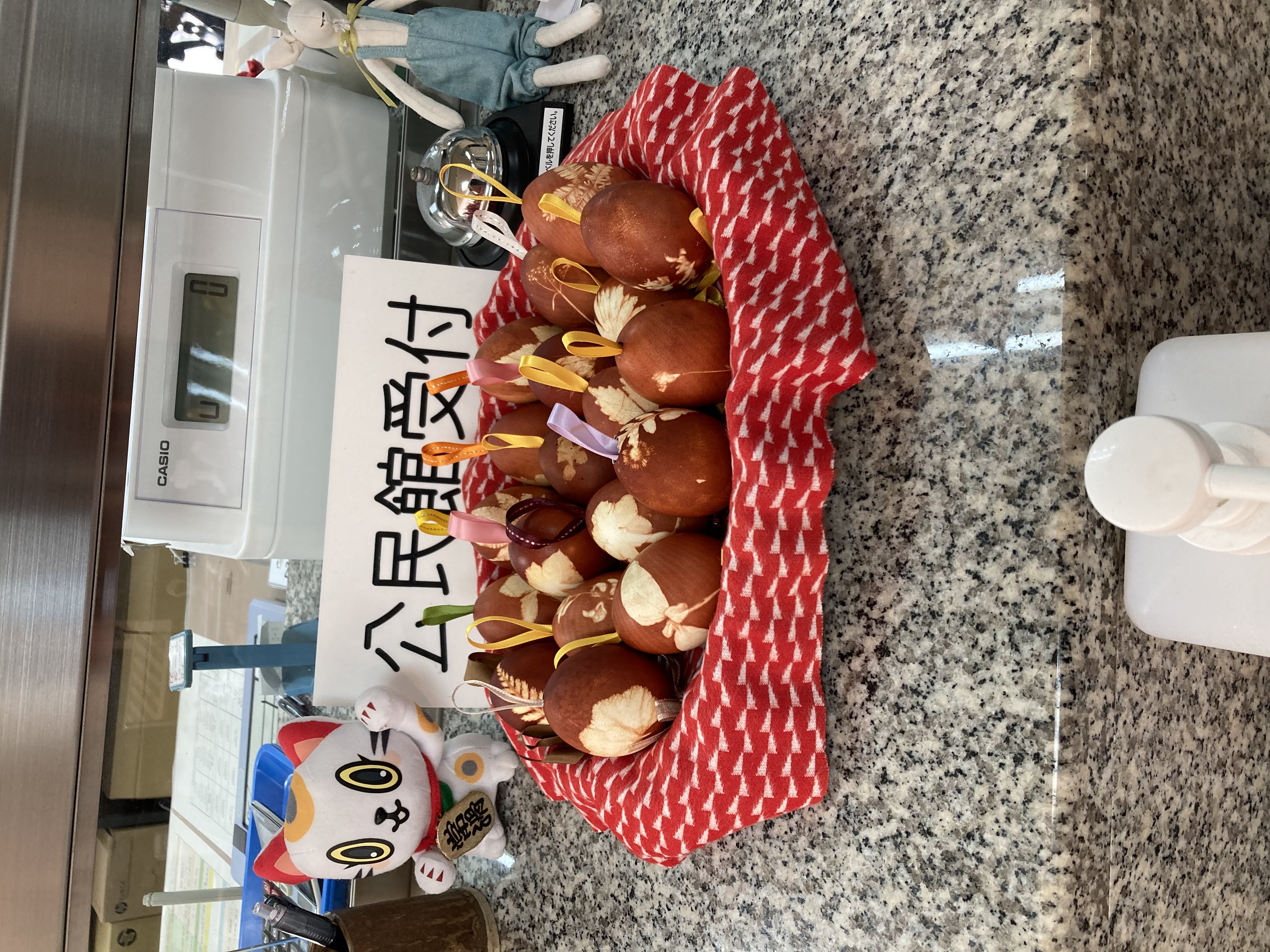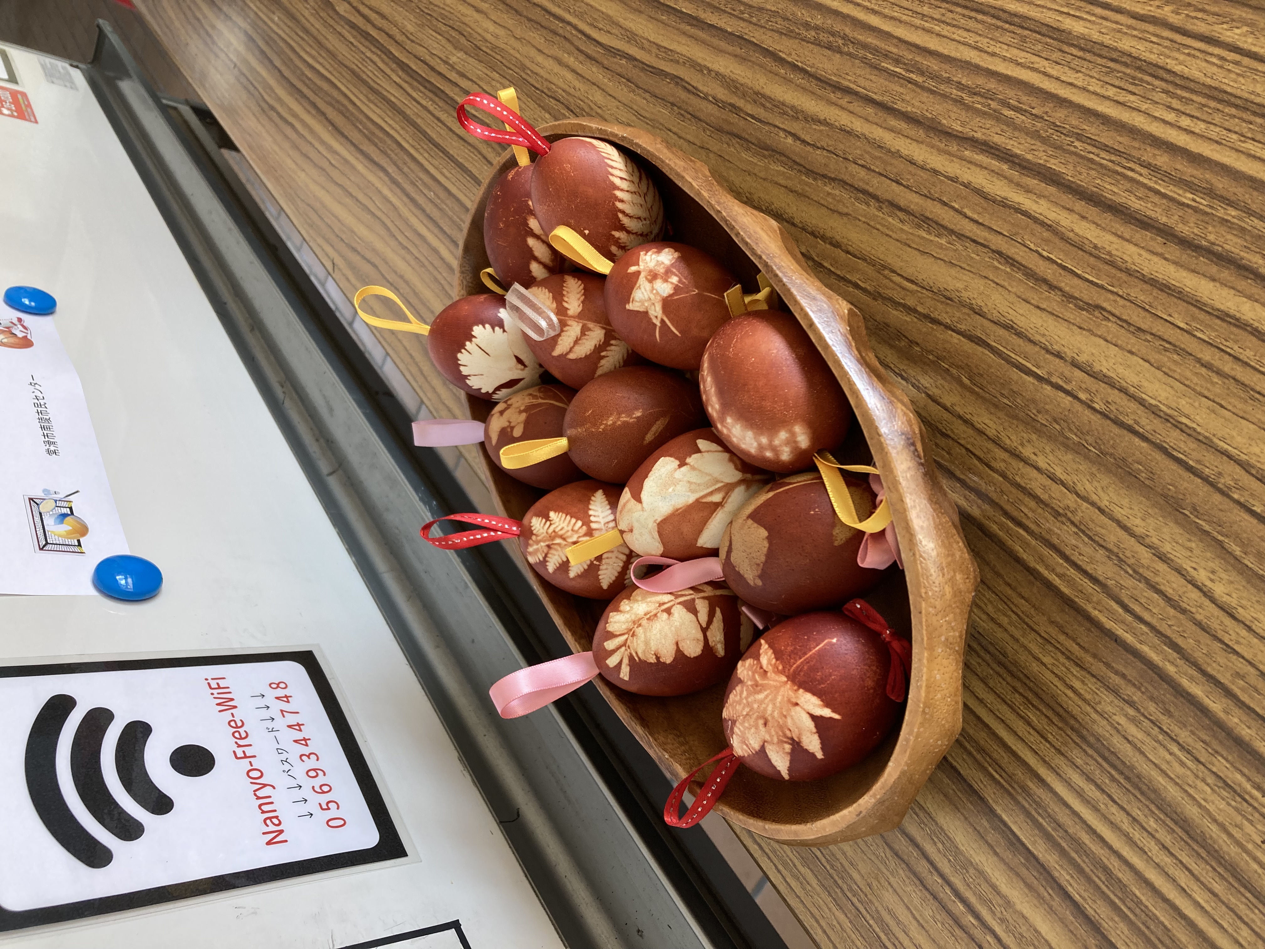 さて、利用者の方の中にはすでにお気づきの方もいらっしゃると思いますが、イースターエッグを展示してます!