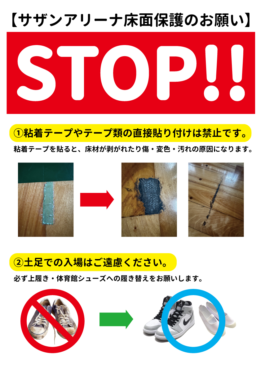サザンアリーナを長く大切に使っていくため、床面の保護にご協力をお願いいたします。