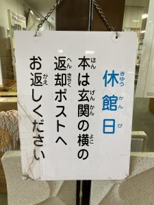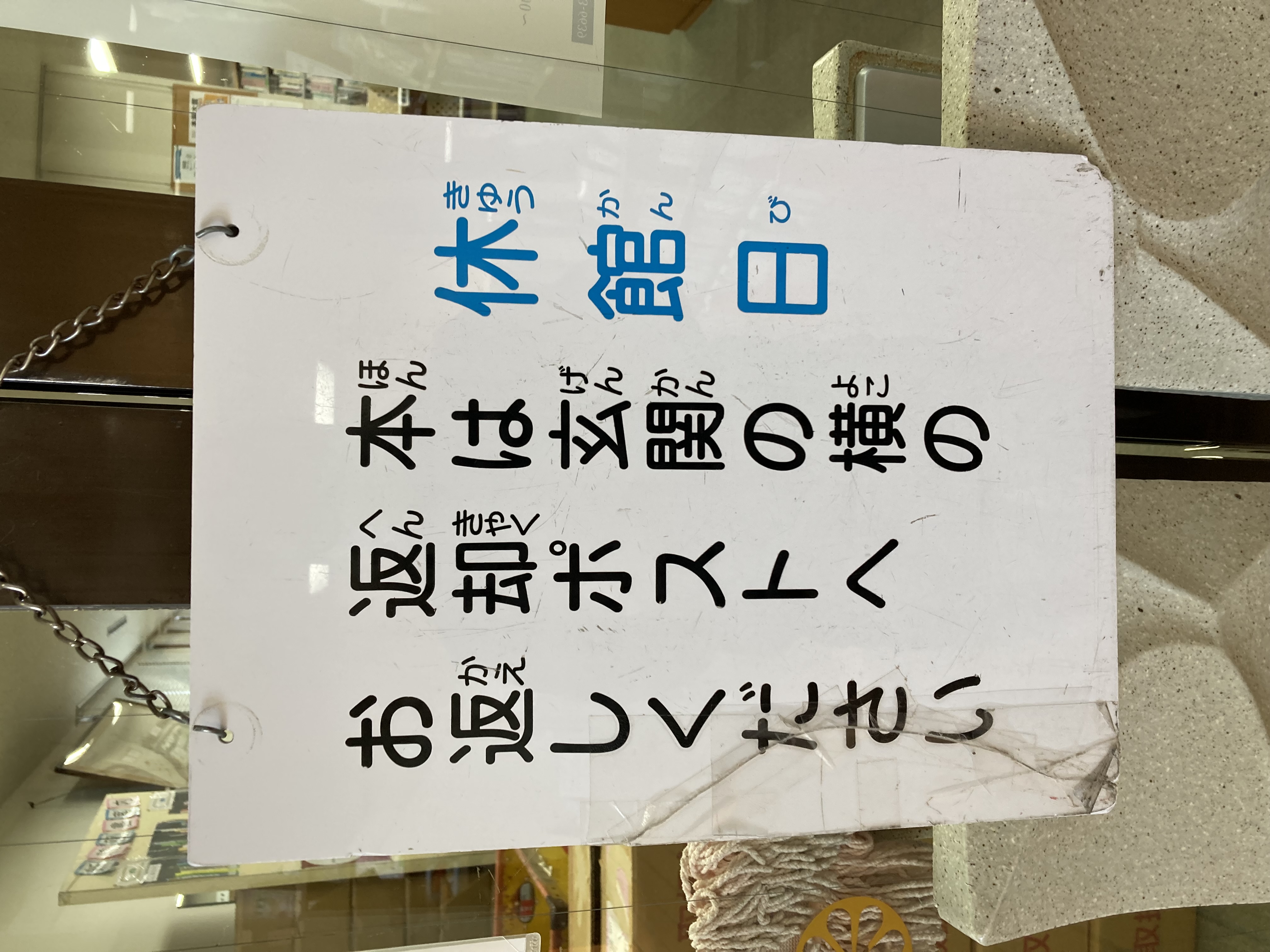 また、本日の本の返却に関しては公民館の正面玄関の左壁にありますブックポストの方へよろしくお願いいたします。