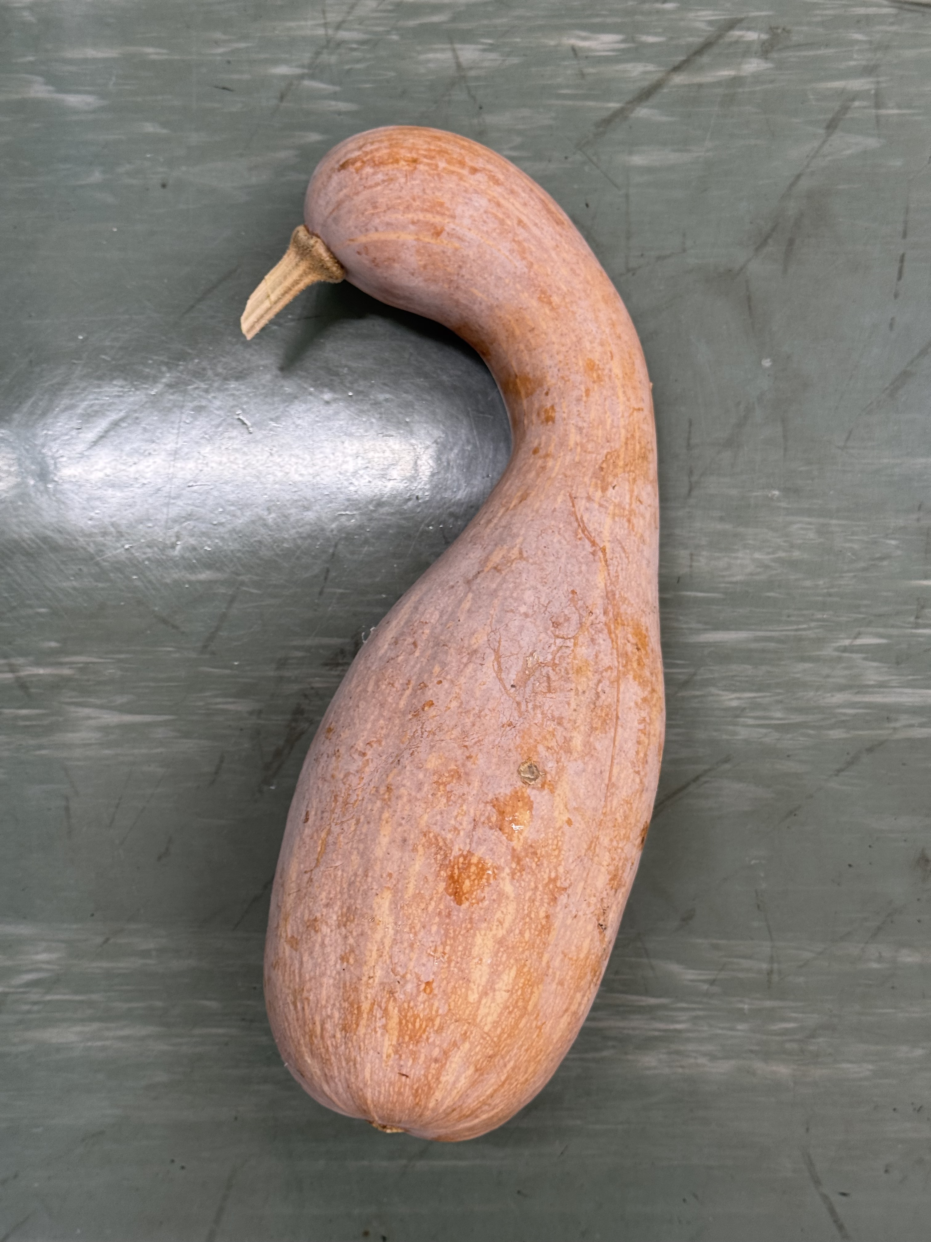 鶴首(つるくび)カボチャは、日本古来の「日本カボチャ」の一種で、愛知県を含め古くから各地で栽培されてきた伝統的な品種です。細長い特徴的な形をしており、愛知県内では特に伝統野菜の一つとして根付いていますが、現在は生産量が減少している希少な野菜でもあります。(Gemini)