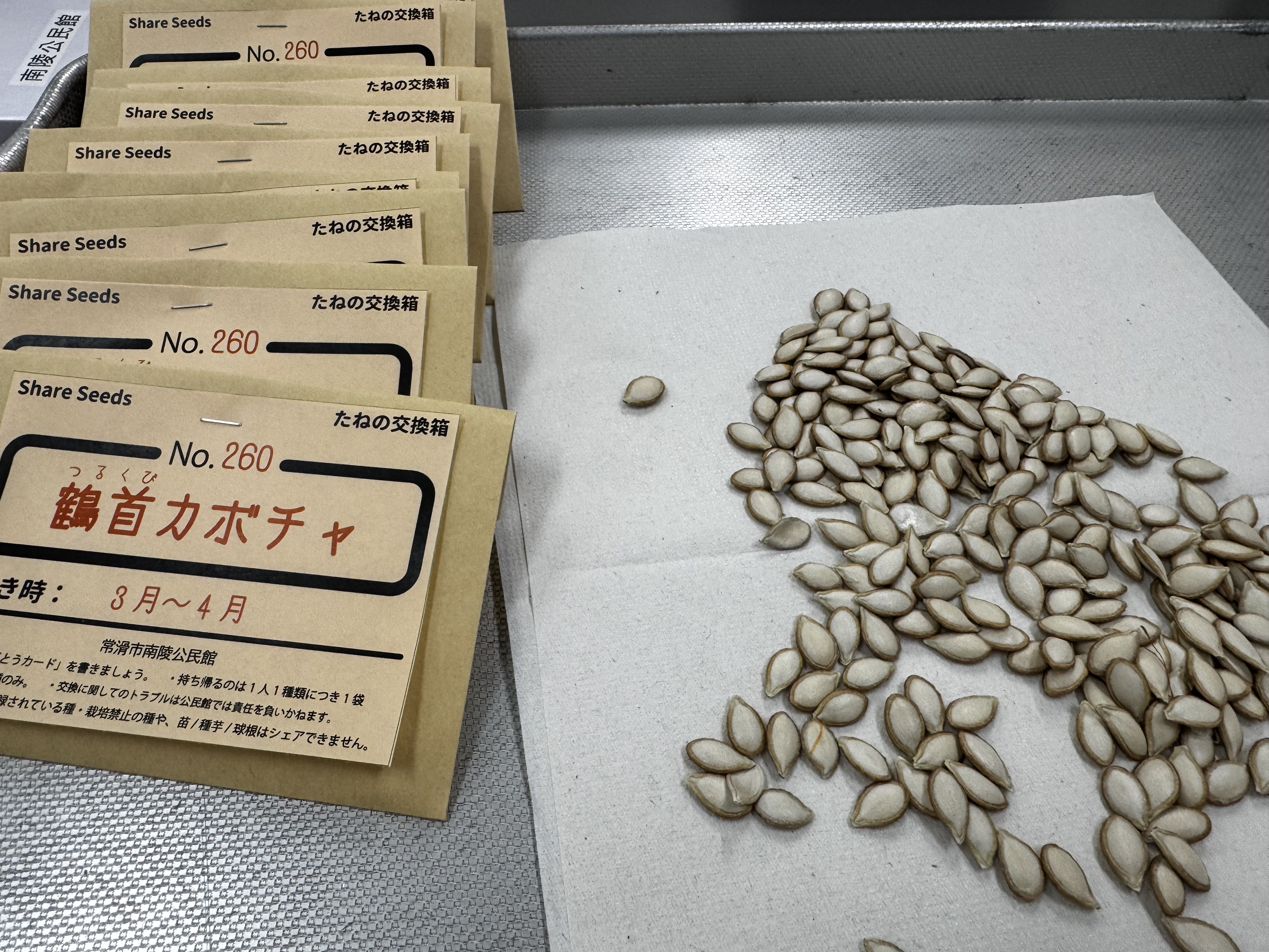 先日、「鶴首カボチャ」の種も採種したので、希望があれば参加者の皆さんともシェアできたら嬉しいです。