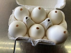 すでに卵の中身は抜いてあるよ。失敗を含め6個作ろう! 割れませんように…
