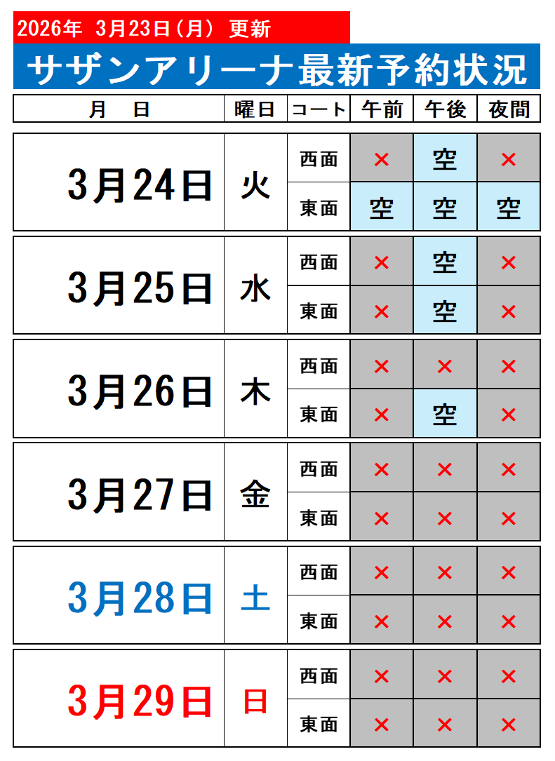 なお、本日より5日先までは、ネットでの空き状況はご確認いただけませんので、下記の日程表をご覧ください。 尚、キャンセルまたは前日までのお支払い等で、変更になる場合がございます。