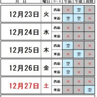 今日から9日間、休館しております。ご不便をおかけいたしますが、来年1月6日(火)からのご来館をお待ちしております。 新年1月6日~12日までのアリーナの空き状況(12/27 現在)については下記の日程表をご覧ください。た …
